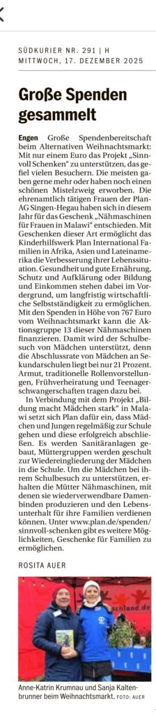 13 Nähmaschinen für Plan durch Adventsaktionen